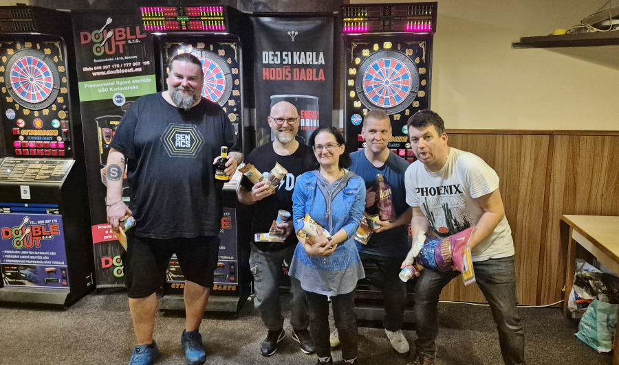 Při příležitosti 25. Ostrovské T🎯Pky se odehrál na Kolečku velice oblíbený a prestižní turnájek v CRICKETu, který se u nás hraje pouze jednou ročně! 🥳 Tento rok ho navštívilo krásných 16 borců 🥰 Blýskavé medaile a lákavé ceny byly velikou motivací. Z celkového vítězství a své první zlaté medaile v Cricketu se mohl radovat Rudohor Franta Hochmann 🥇který ve finále a pozdějším superfinále udolal Matěje Štěpánka poměrem 2:0 a 2:1 a celý zápas tak dokonale otočil ve svůj prospěch. Zajímavostí je, že od prvního kola šel s prohrou hned do levačky 💪 Matěj se tak musel spokojit se stříbrem 🥈 a aviváží od lenoru. Bronzovou medaili 🥉a velkou porci utopenců bral Matějovo týmový kolega Stanilav „Kohák“ Petro. 5 kg brambor 🥔 zůstalo v Ostrově. Kuba Eis se s nima ve společensky unaveném a upraveném stavu domů ale jistě pěkně pronesl 🤣 Celý turnájek se odehrál v rychlém tempu 🏃 a tak se nakonec stihli ještě odpadlíci 😎 V nich dominoval Mrnďa, který si ze všech udělal trhací kalendář 😃
