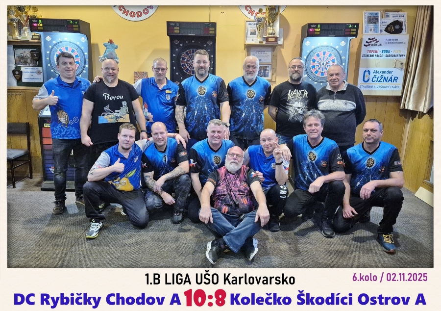 Další ze smolných zápasů má za sebou Ostrovský prvoligový tým 🎯 Áčko Škodíků tentokrát netradičně v neděli zajížděli k Rybičkám do nedalekého Chodova 🐟 Domácí hráči na tým z Kolečka nastoupili v nejsilnější plné sestavě a výhrou by se tak po zaváhání Karlovarského Bacardi dostali zpět do čela tabulky 📈 Nakonec to bylo překvapivě celkem vyrovnané utkání, kde v zápasech rozhodovaly jen maličkosti 🤔 Favorizované Rybičky ale přece jen mohli slavit vítězství a to i za velké podpory domácích fanoušků. Škodíci sice domů odjížděli trochu smutní, ale určitě se nemuseli za co stydět 😉 Pevně však věříme, že další zápas už zase budou naplno bodovat 💪