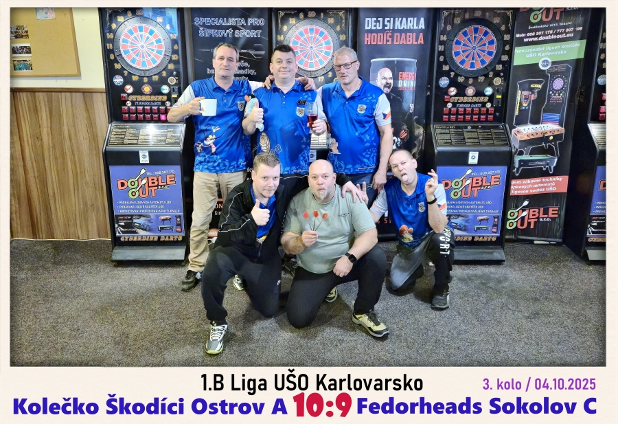 1.B liga má za sebou třetí kolo 😉 Škodíci ani tentokrát nepoznali hořkost porážky! Za výhru v prodloužení berou dva zlaté těžce ubojované body 💪 Výhra se ale vůbec nerodila lehce. Utkání se přelévalo ze strany na stranu. V zápase bylo k vidění spousta krásných náhozů a legů, ale naopak i nervózní hry při kterých rozhodovalo i kousek toho štěstíčka, které se tak více přiklonilo na stranu domácích 🍀 Kapitán Mrnďa v rozhodujícím legu a v nervydrásající koncovce odvrátil doublem čtyři porážku. Poslal tak utkání do prodloužení, kde rozhodlo 180-kové bingo a konečné zavření od Tomáše Spruzsanského. Mohly pak propuknout velkolepé oslavy, které snad probíhaly už od samého začátku utkání 🥳 😃 Děkujeme soupeřům ze Sokolova za nádherný, dramatický zápas a přejeme hodně úspěchů do dalších bojů 🫱🏻🫲🏼👏 Bylo to s Váma fajn šipkové 🎯 odpoledne 🙂