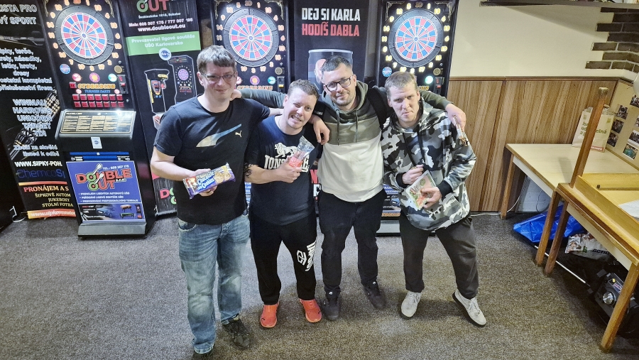 34. turnájek T🎯P je minulostí. Mílovými kroky se blížíme do cíle a tak se finálová 16-ka už začíná pomalu tvořit 📝 Stále však zbývá odehrát šest turnajů, takže bodíků na rozdávání bude ještě spoust 😎 Taky Vám připadá, že na fotkách těch nejlepších jsou stále ty stejné obličeje? 🤠 Oni ale skutečně jedou bomby! 💣Nejeden šipkař si na nich vylámal zuby 🦷 😃 Tentokrát se nám sešlo 21 šipkových nadšenců, kteří vydrželi díky turnaji odpalíků až do pozdních nočních hodin 😴Nejlepším hráčem večera se stal Matěj Štěpánek, který sice ve finále podlehl svému týmovému parťákovi „Kohákovi“ 2:0 aby pak v superfinále dal více toho šipkařského umění na svou stranu a poměrem 2:1 tak mohl oslavit sladké a celkové vítězství 🥳🏆 Pedro byl s druhým místem i tak převelice nadšený. Třetí flek bral lehce smutný Franta Hochmann, kterému vyfoukly Nesquik pro děti 🥹 Další Štěpánek, pro změnu Zdeněk bral čtyřku a špekáčky k tomu 🔥 Nejlepší ženou byla v rozstřelu Míša z Ostrova, která porazila Hanku z Jáchymova. Do odpadlíků se přihlásilo nezvykle vysoké číslo. Z 12-ti borců byl nakonec nejlepší Škodík Jan Hruška, který ve finále nedal šanci baleťákovi Rendovi 🕺🤣