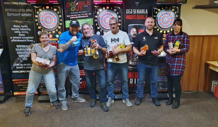 Tomáš byl doposud neporažen a i v základní skupině nedal Zdeňkovi žádnou šanci na nějaký odpor. Semifinále však mělo zcela odlišný scénář. Tomáš v souboji překvapivě padl, když ho Zdeněk skvělýma šipkama převálcoval poměrem 4:2. Druhé semifinále bylo nejvyrovnanějším utkáním celého dne. Mladíček Šimon Sura za celý den prohrál pouze jedno jediné utkání a to tuhý boj s ostříleným matadorem a ve váhové kategorii asi tak o 100kg těžším :-) Rendou Loučimem 4:3. Šimon 🥉 si aspoň spravil chuť v boji o třetí místo, kdy nalomeného Tomáše porazil 4:2. Finálové utkání mělo být o to více náročnějí, protože se duel měl hrál na 5 vítězných legů. To už si při loňském finále okusil Zdeněk Štěpánek. Tam však proti Kájovi Gibiecovi neuhrál ani leg. Tento rok si však zcela napravil chuť. Ač druhý finalista Renda nechtěl prodat svojí kůži lacino, tak na rozjetého Zdeňka prostě neměl ten den šanci. Na Rendu 🥈 už toho bylo zjevně hodně. Na finálovém výkonu se jistě podepsal i těžký seminálový zápas se Šimonem. Vítězem 8. ročníku Ostrovské TOPky se tak nakonec po výhře 5:2 za skvělé výsledky v KO pavouku a zcela po právu a stal Zdeněk Štěpánek 🏆 🥇 Kromě štědrého finančního obnosu dostal i soudeček piva od sponzora Staropramen! Putovní pohárek mu bude předán dodatečně.